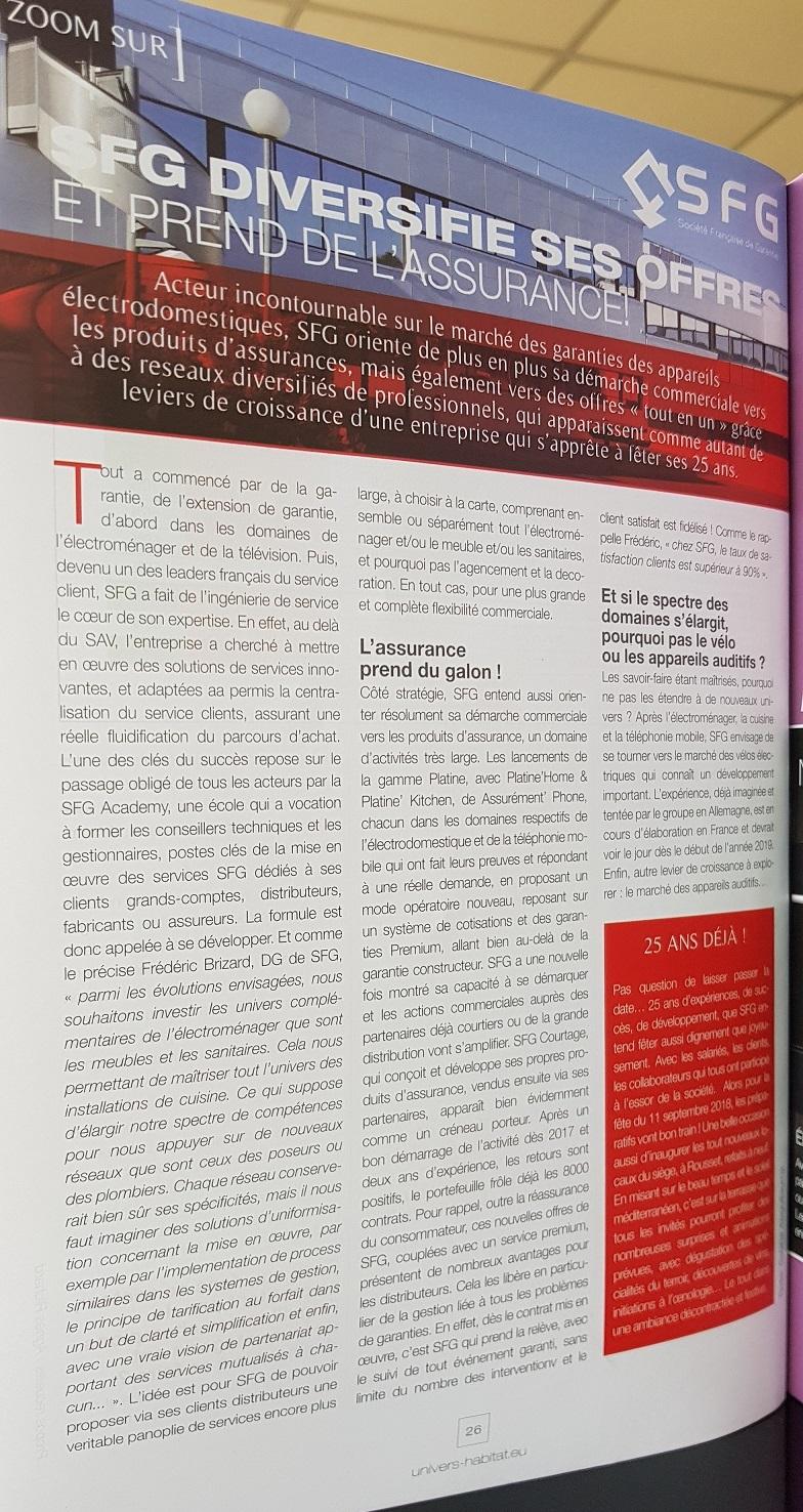 Acteur incontournable sur le marché des garanties des appareils électrodomestiques, SFG oriente de plus en plus sa démarche commerciale vers les produits d’assurances, mais également vers des offres « tout en un » grâce à des réseaux diversifiés de professionnels, qui apparaissent comme autant de leviers de croissance d’une entreprise qui s’apprête à fêter ses 25 ans.